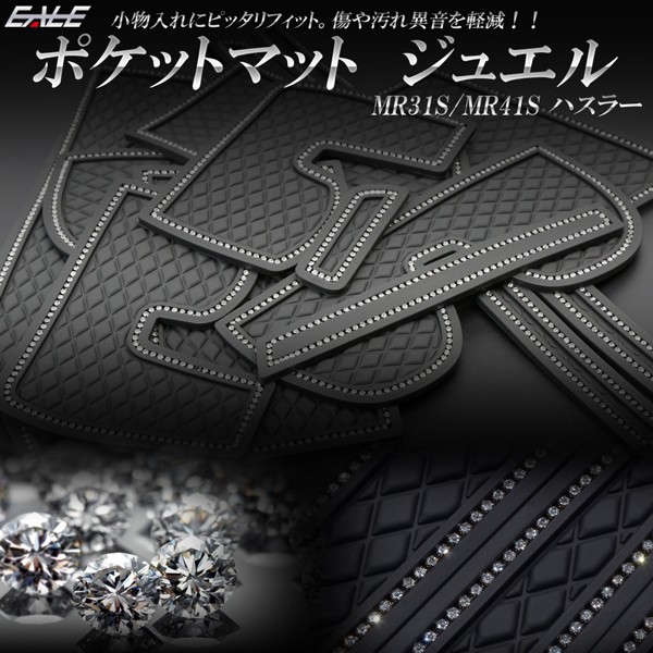 スズキ MR31S MR41S ハスラー ゴム ポケットマット ジュエル ダイヤ柄 ブラック ラインストーン 12点セット S-428