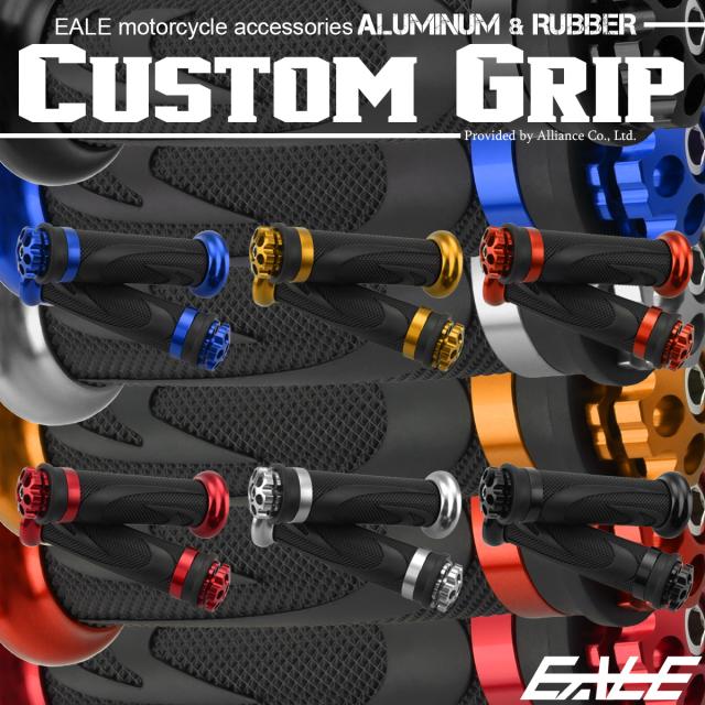バイク グリップ ハンドル アルミ ラバー バーエンド付き 22.2mm用 左右セット カスタム ドレスアップ S-242
