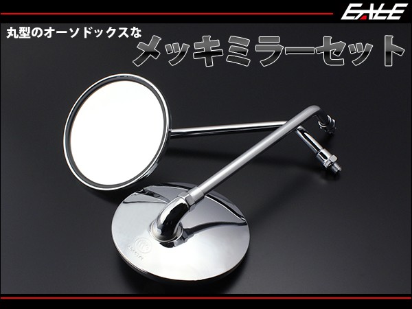 バイク用 丸型メッキミラー 汎用品 M10正ネジ 左右セット S-264