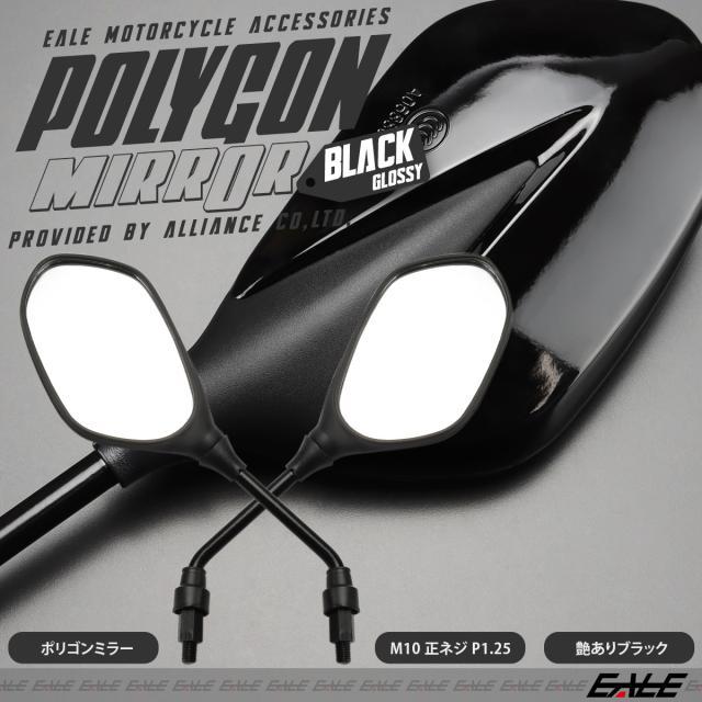 バイク ミラー 純正風 ポリゴン 角型 多角形 艶ありブラック 左右セット 10mm M10 正ネジ カスタム 汎用 S-266