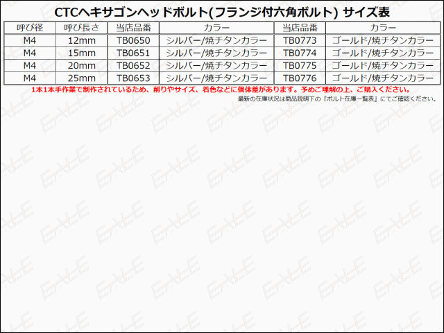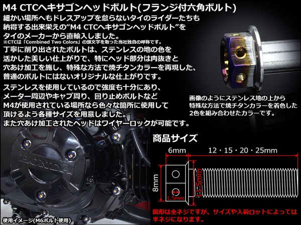 M4×12mm P0.7 フランジ ヘキサゴンヘッドボルト 六角ボルト ステンレス CTC シルバー&焼チタンカラー TB0650