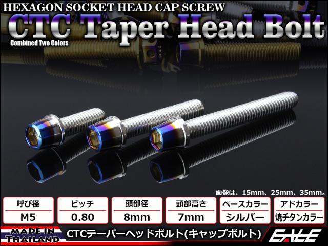 テーパーヘッドボルト CTC キャップボルト M5×35mm ステンレス 六角穴 シルバー&焼チタンカラー TB0600