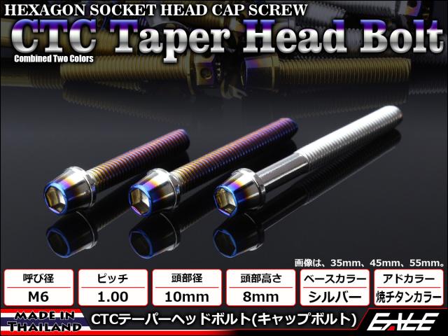 テーパーヘッドボルト CTC キャップボルト M6×95mm ステンレス 六角穴 シルバー&焼チタンカラー TB0619