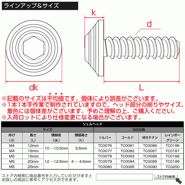 バイクに熱い情熱を注ぐタイのメーカーから直輸入したシェルヘッドネジです。