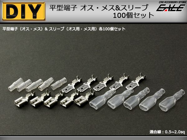 平型端子&スリーブ オス・メス各100個 配線作業に I-73