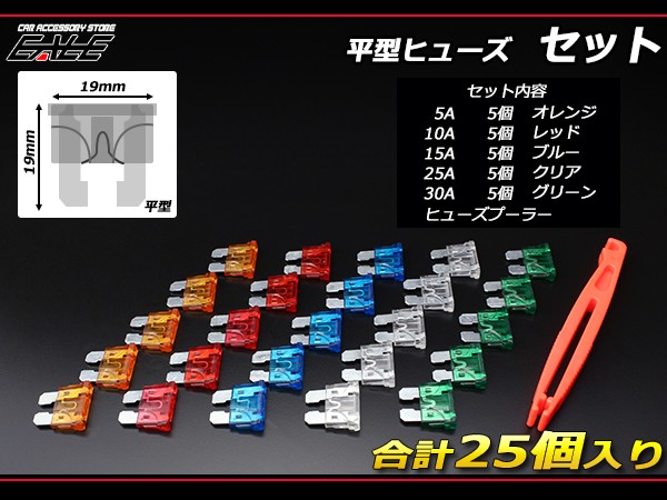 平型 ヒューズ セット 5種類 各5個 合計25個入り 引抜工具付 I-122