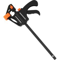 長い物の固定が素早く簡単にできるクランプです。締め付ける作業と広げる作業が1台で可能です。ボタンを押せばスライドするので固定作業がすばやく簡単に行えます。口の開き約150mm。