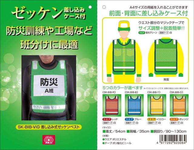 SK11 差し込み式ゼッケンベスト 蛍光グリーン/反射テープ白 SK-BIB-ViGに関する詳細なお問合せは下記までお願いします
