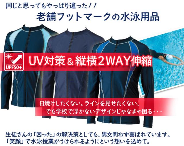 フットマーク スクール水着 ラッシュガード UPF50 ジップアップ 長袖 サイズ選択OK キッズ・メンズ・レディース共用【送料無料】