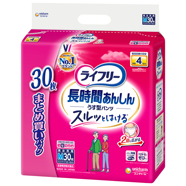 ライフリー長時間あんしんうす型パンツMサイズ4回吸収30枚入×2パック 【直送品】【送料無料】