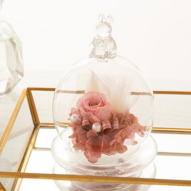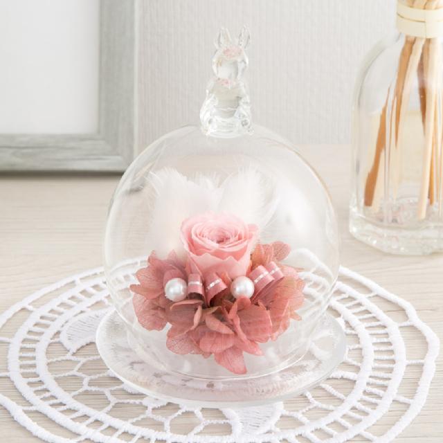 プリザーブドフラワー ガラスドーム ギフト 『シュ シュ ラパン』【花 誕生日 結婚祝い 結婚記念日 プレゼント プリザードフラワー 送料無料】