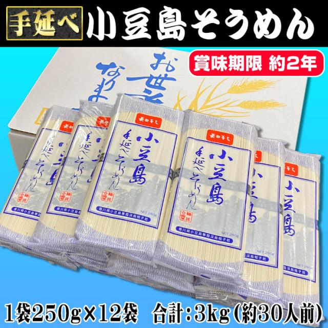 ■商品内容:手延べ小豆島そうめん250g×12袋(約30人前)■賞味期限:常温で約2年■配送方法:宅急便■送料:無料※北海道、沖縄のみ460円■特典:包装・のし・MSGカード無料(ご指示要)