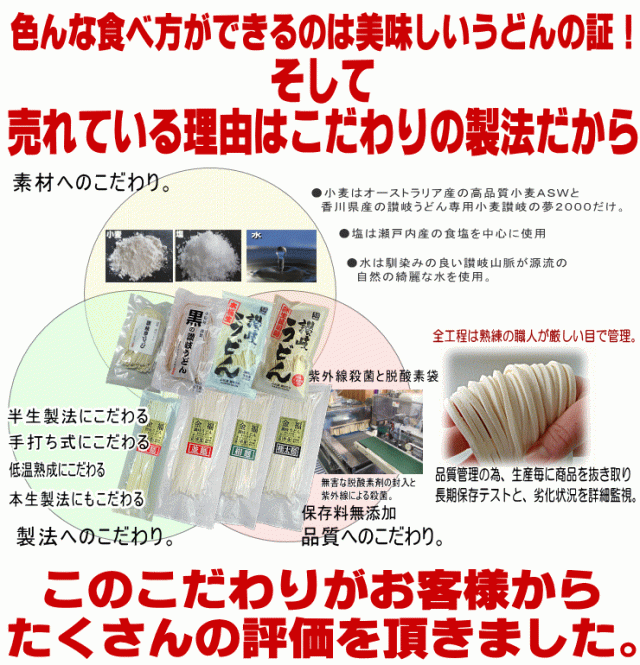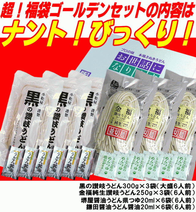 ゴールデンセット(黒と白の讃岐うどん)■商品内容:黒の生讃岐うどん300g×3袋、金福純生讃岐うどん並切250g×3袋(合計大盛12人前)、うどん県のめんつゆ20ml×6個、うどん醤油20ml×6個■賞味期限:黒の生讃岐うどん・常温約20日、金福純生讃岐うどん並切・常温約35日、各つゆ・常温約11ヵ月■送料:日本国内全国(北海道・沖縄を除く)送料無料■のし包装:無料