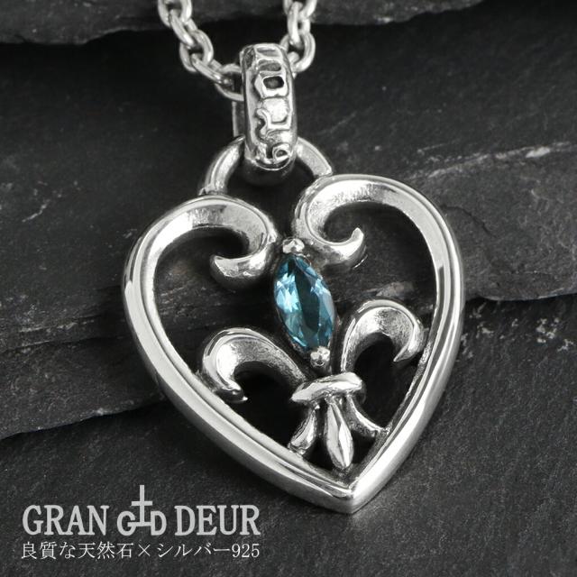 GRAN DEUR 選べる 天然石 リリー ハート シルバー ネックレス ペンダント ペンダントトップ サファイア トパーズ ガーネット ペリドット アラベスク