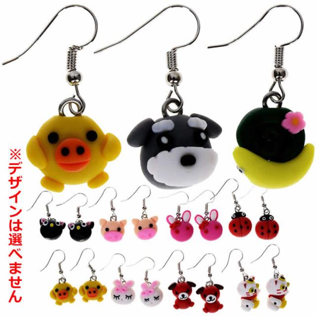 可愛い手作りフィギアのステンレスピアス 1個販売 サージカルステンレス316L 犬 猫 蛙 猿 ドッグ キャッチ ネコ イヌ カエル モンキー 食玩 食べ物 クマ 熊 ベアー カタツムリ ウサギ バニー ラビット 兎 豚 ブタ アニマル 3D 立体 ハンドメイド おもしろ 面白い オモシロ