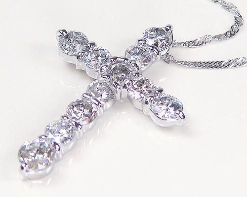 プラチナダイヤペンダントネックレス/クロスデザイン1.00カラット【送料無料】【4月誕生石ダイヤ】