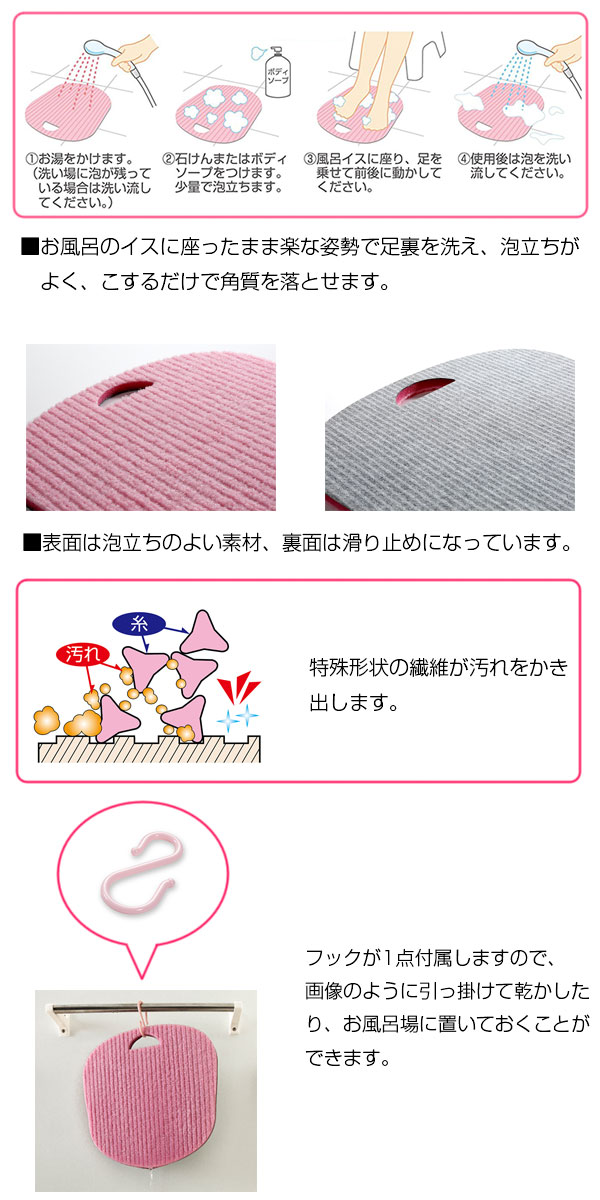 裏面が滑り止めになっているので、お風呂のイスに座ったまま、楽な姿勢で足裏が洗えます。