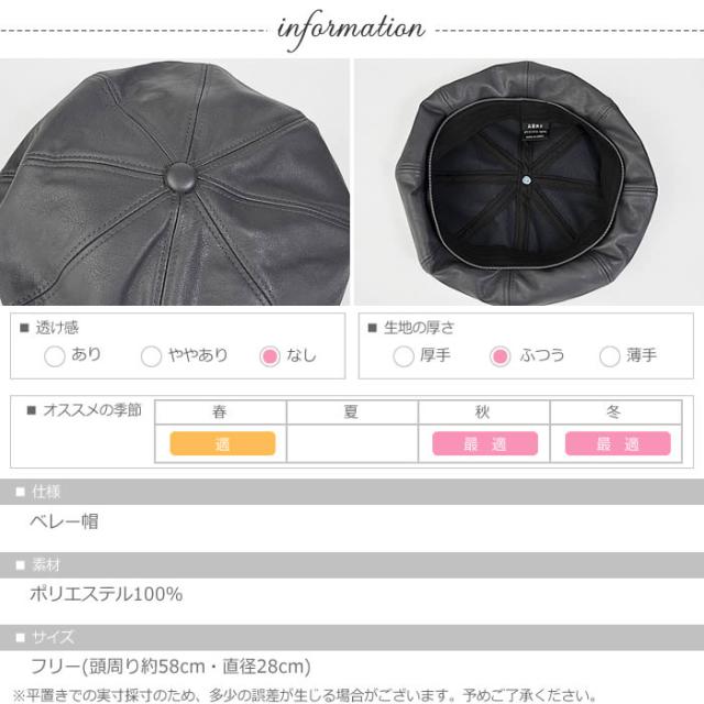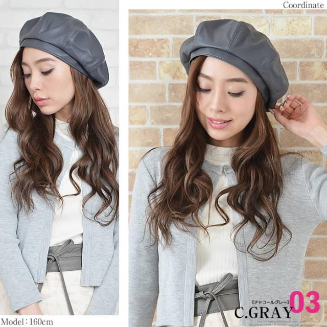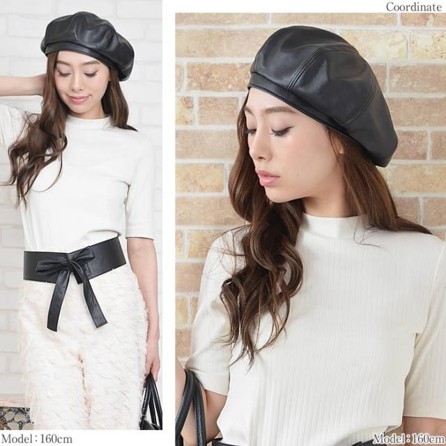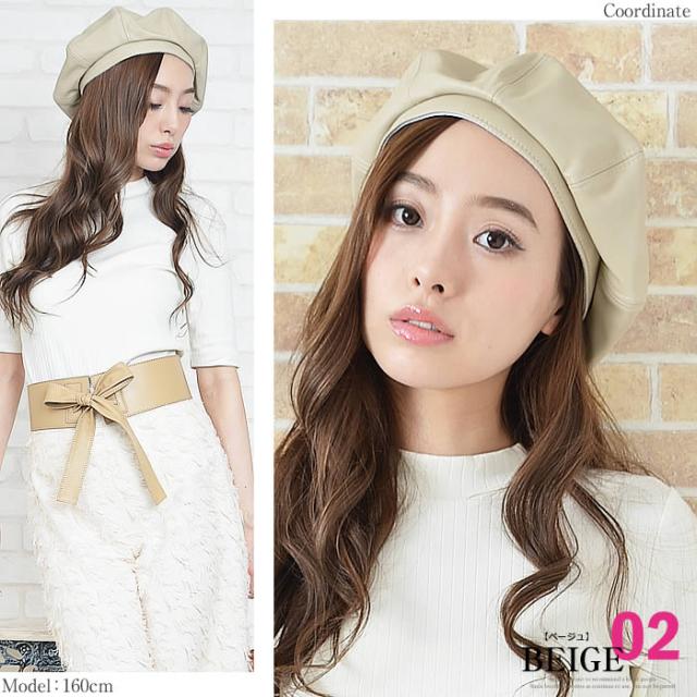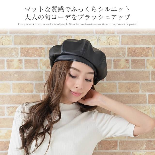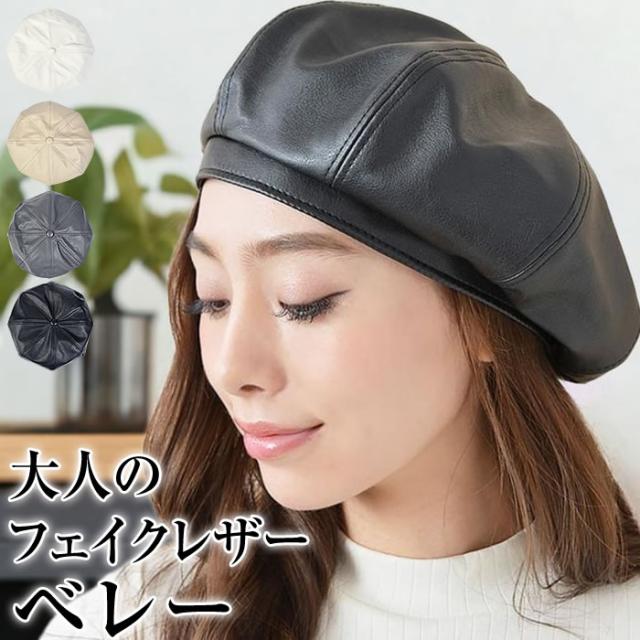 ベレー帽 レディース ゆうメール便送料無料 ベレー帽 レディース ベレー 帽 帽子 フェイクレザー 合皮 フェイクレザー8パネルベレー帽
