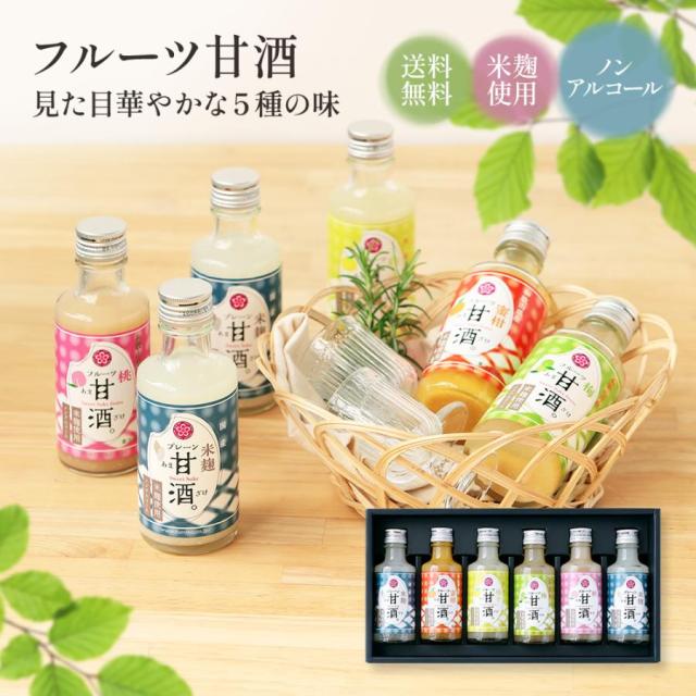 果汁たっぷり 紀州フルーツ甘酒5種6本セット(梅、みかん、桃、柚子、プレーン)(ノンアルコール、米麹使用) 健康ギフト ギフト プレゼント フルーツ おしゃれ 送料無料 ふみこ農園 贈り物 mom papa kr
