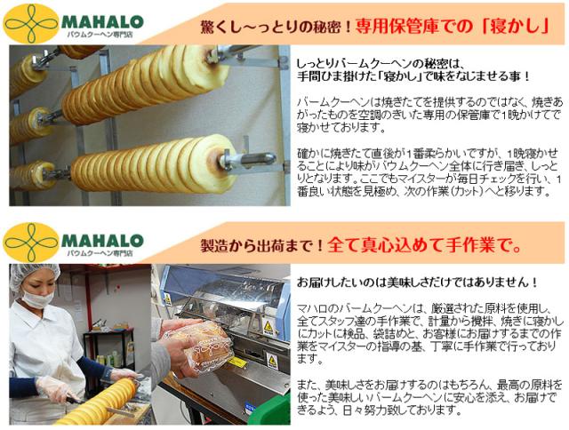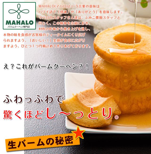 和歌山のバームクーヘン専門店からお届けする、とびっきりの生バーム! ふみこ農園ネット部スタッフ全員が自信をもってオススメする、原料や製法にこだわりの、 粉の吟味、ブレンドの割合。 マハロのバームクーヘンは、どれひとつをとりましても、お口に広がる味と風味にこだわった、
