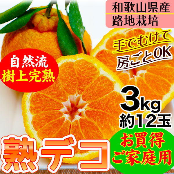 2026年 ご予約受付中 ふみこ農園 ご家庭用 露地栽培の樹上完熟デコポン「熟デコ」和歌山県産【送料無料】サイズ不揃い、多少の傷有り3kg(約12玉)