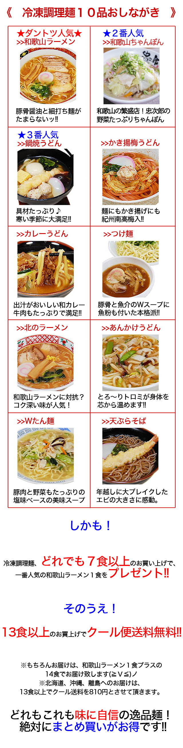 どれでも7食以上お買上げで一番人気の和歌山ラーメン1食をプレゼント♪