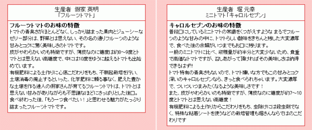 どちらももちろん、減農薬、減化学肥料で栽培した、安心・安全のお味にもこだわりのトマトです。