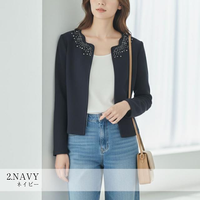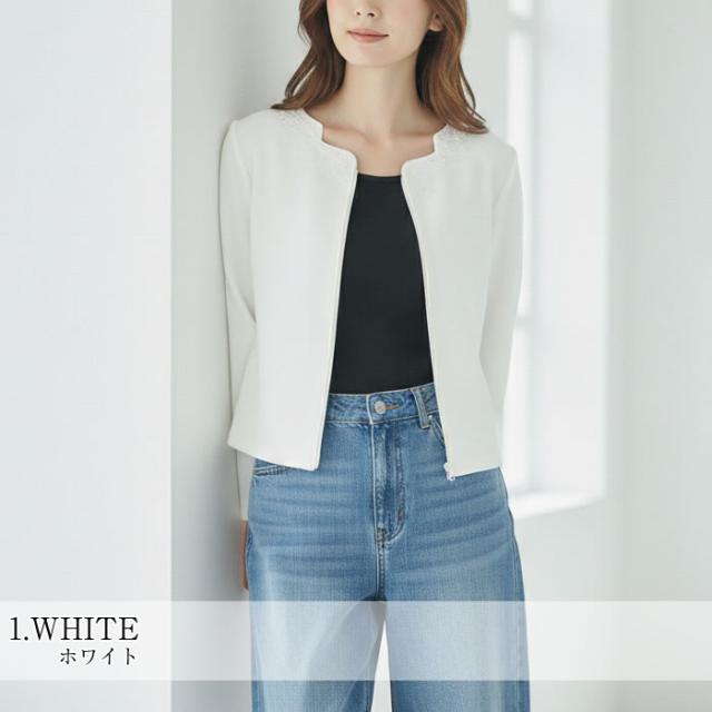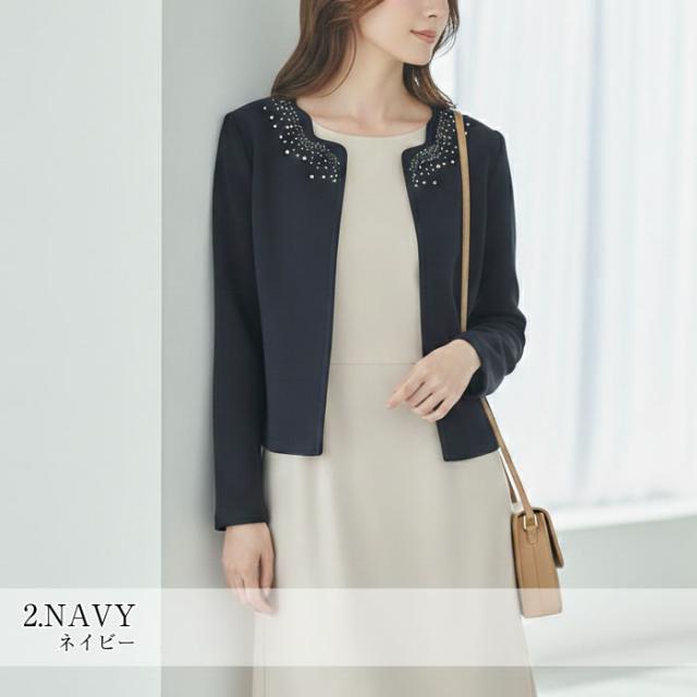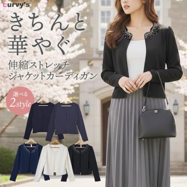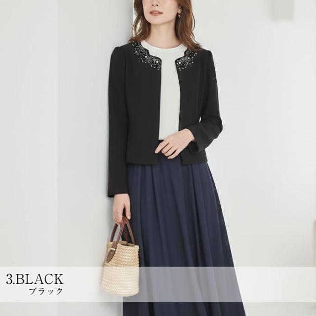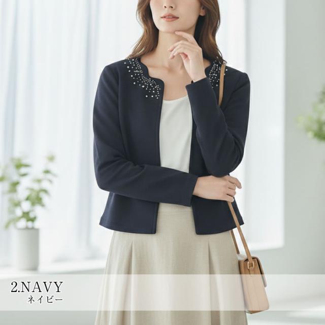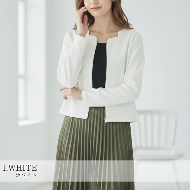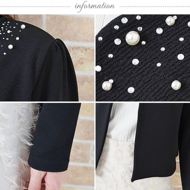 ジャケット レディース 入学式 洗える 白 黒 セレモニー カジュアル 春 春夏 ジャケット風 フォーマル ゆうメール便送料無料 カーディガン きれいめ ショート丈 長袖 懇談会 ストーンパールジャケット風カーディガン