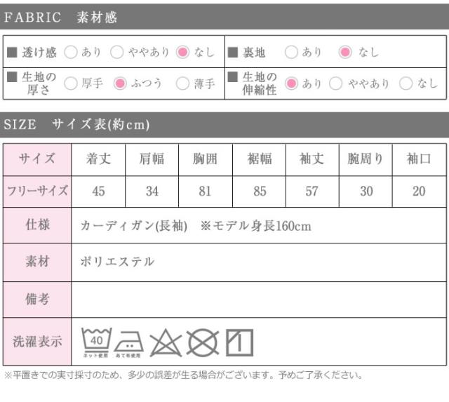 | 仕様 | カーディガン(長袖) ※着用モデル:160cm |