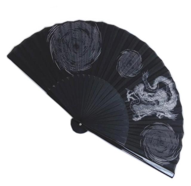 扇子 メンズ 男性 絹 シルク 黒色地龍渦巻 浴衣 着物 和柄 ゆかた きもの 粋 男物 紳士用
