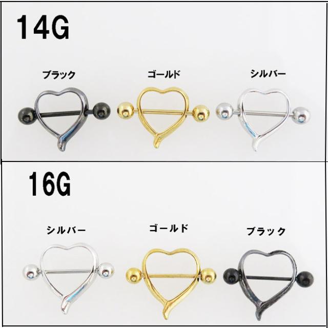 ボディピアス 14G 1.6mm 16G 1.2mm オープンハート ニップルピアス 乳首ピアス ストレートバーベル ボディーピアス 1個売り