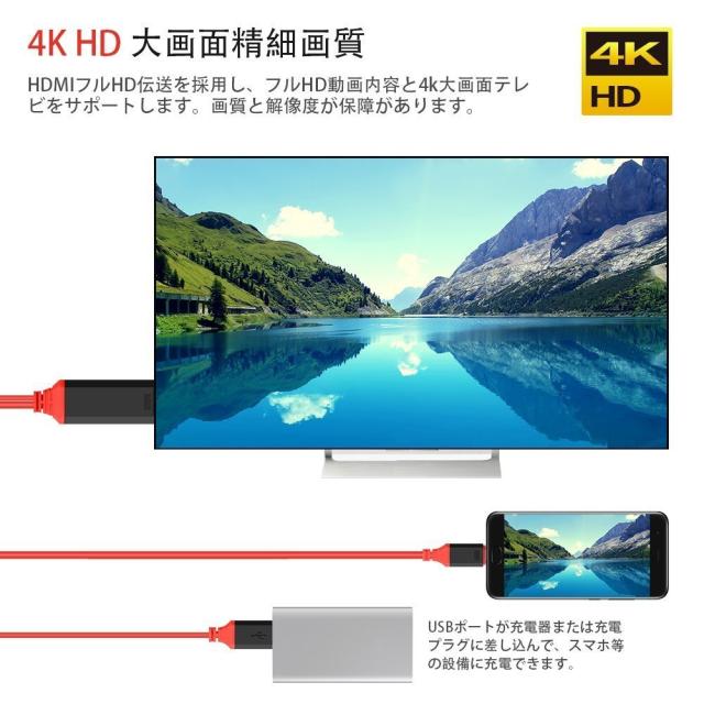 コード1本だけで映像・音声データ伝送可能となり、3D / 4K (3840×2160/30Hz)のモニタやテレビは、1080pのHD解像度の4倍という驚きの画質を実現します、高精細の4Kコンテンツを4Kに対応した大画面の液晶テレビやディスプレイに出力できます。