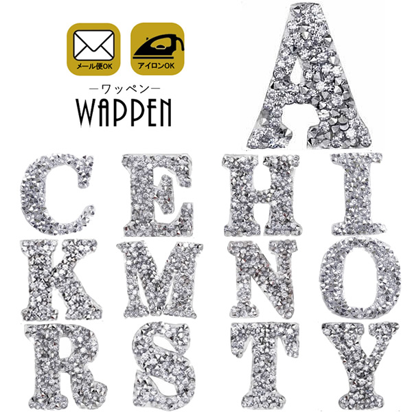アルファベット ワッペン ストーン クリスタル アイロン接着 イニシャル キラキラ アイロンワッペン デコ アップリケ母の日 プレゼント ギフト