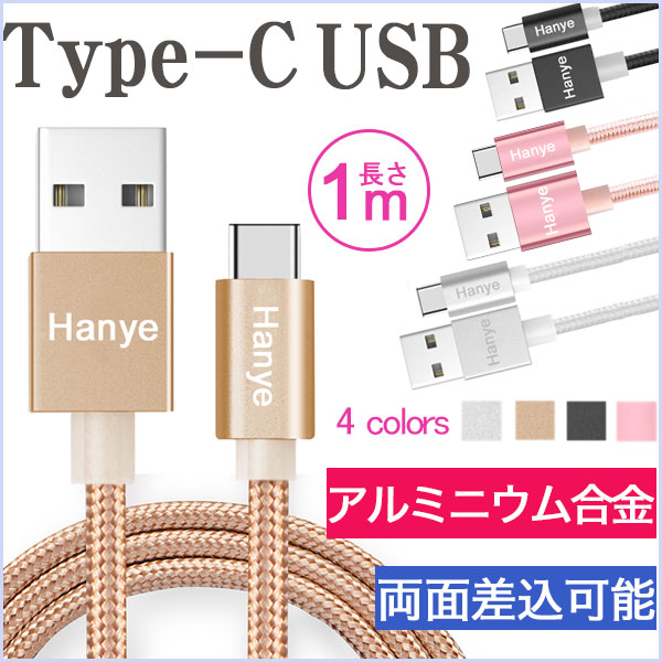 USB Type-C 充電 データ転送ケーブル アルミニウム合金 ナイロン編み 絡み防止 両面差込可能 長さ1m ネコポス送料無料 ポイント消化