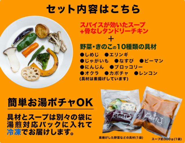 野菜ときのこの具だくさんスープカレー (スープ+チキンティッカ(300g)x1袋+野菜とキノコ(1袋))のセット【冷凍便】 神戸アールティー