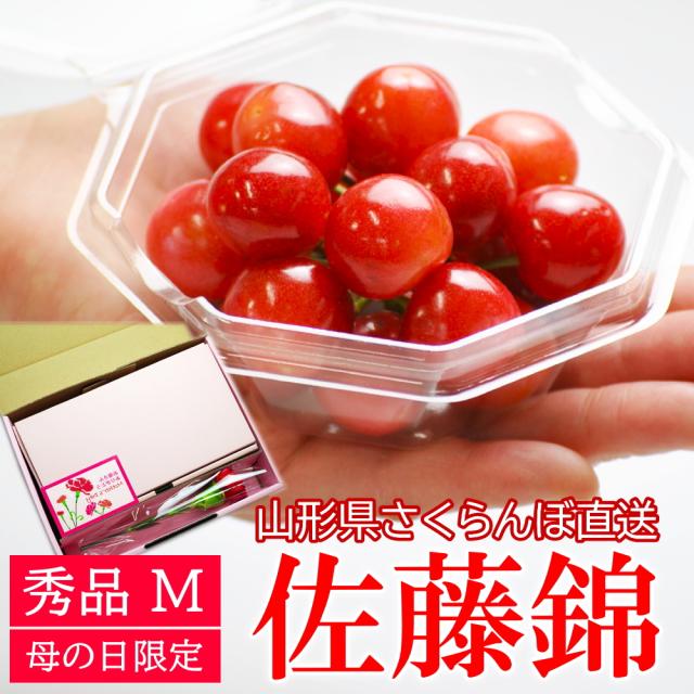 本場山形県より産地直送!さくらんぼ佐藤錦をダイヤパックに丁寧に手詰めいたしました。さらに当店よりカーネーション(生花又は造花)と母の日カードを無料でプレゼント致します。