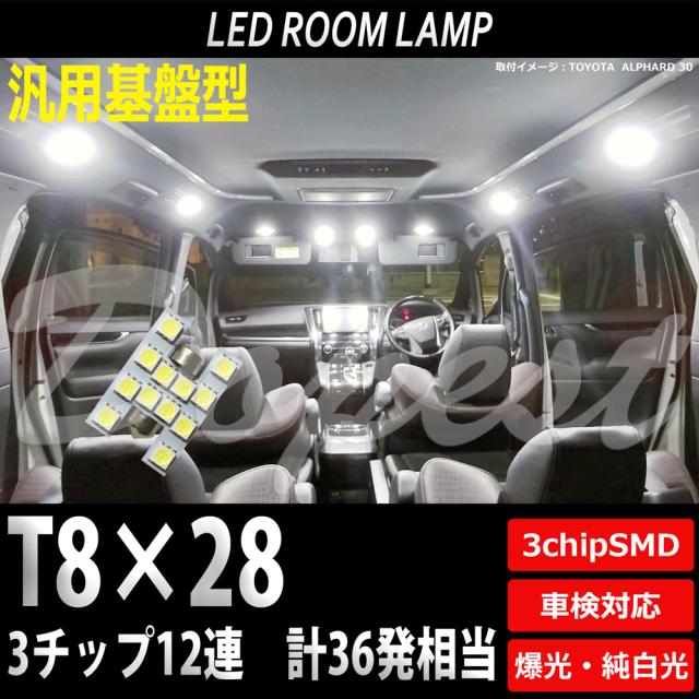 T8×28mm LED バルブ SMD12連3チップ ルームランプ ラゲッジ 汎用 ライト 球 荷室 枕型 フェストン球 T10×28