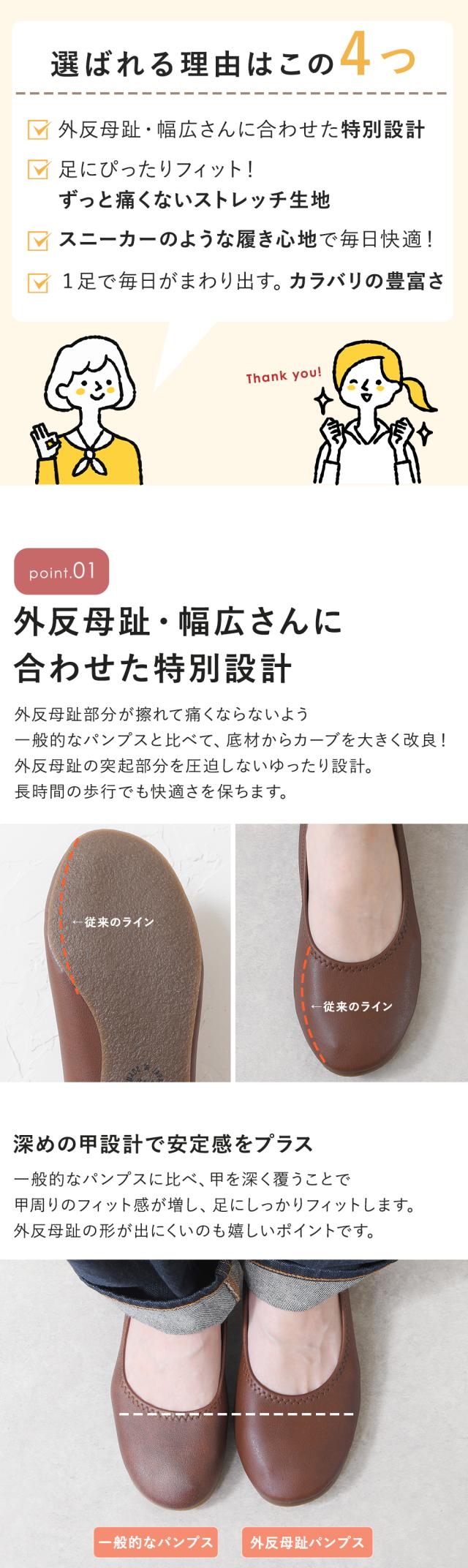 大人気ぺたんこパンプスから幅広・外反母趾専用パンプスが登場!