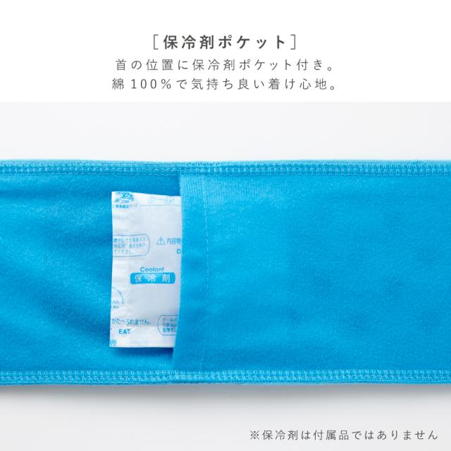 毎年爆発的な人気の保冷剤ポケットが付いた綿100%のネッククーラー(クールタオル・ひんやりタオル)です。