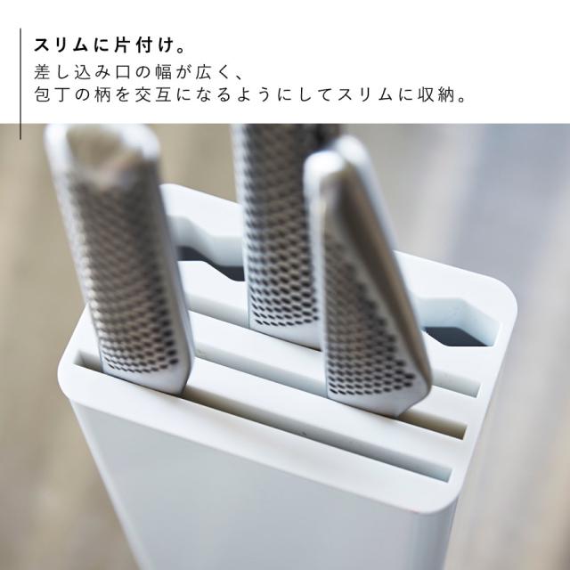 差し込み口の幅が広いので、包丁の柄を交互になるようにしてスリムに収納できます。