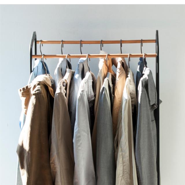 スリムでシンプルなので、圧迫感なく置ける、収納力◎のハンガーラック。