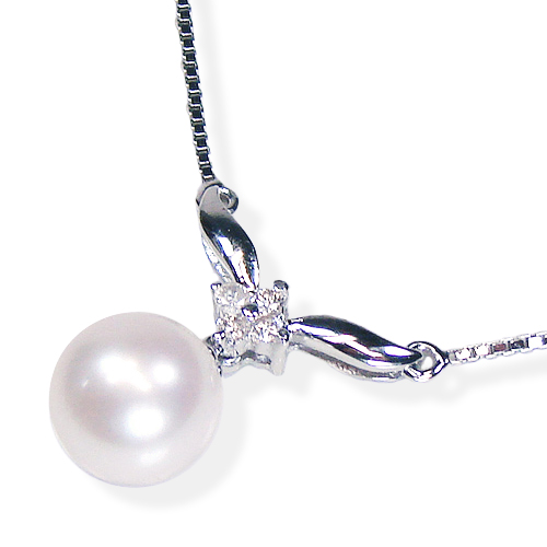 SVアコヤ本真珠ペンダントネックレス/天然ダイヤモンド入り【送料無料】【6月誕生石真珠】