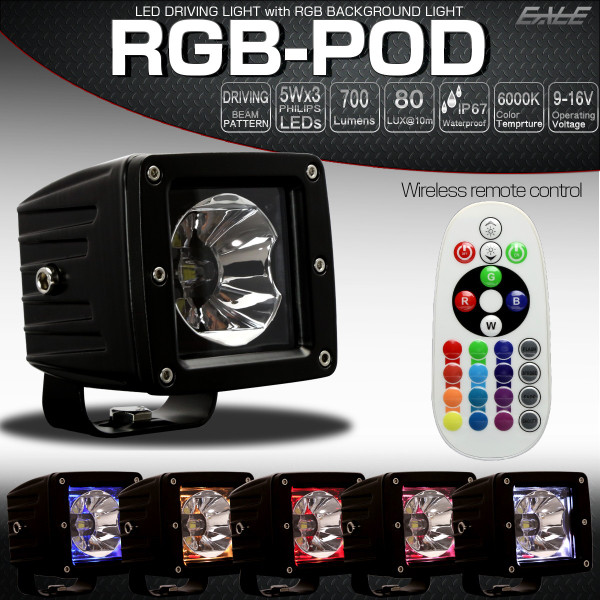 LED 15W ドライビングランプ RGB-POD 赤外線リモコンでバックライト変更可 P-498