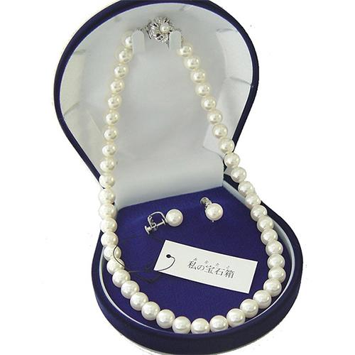花珠貝パールネックレスイヤリングセット/ホワイトカラー9ミリ42センチ【6月誕生石真珠】