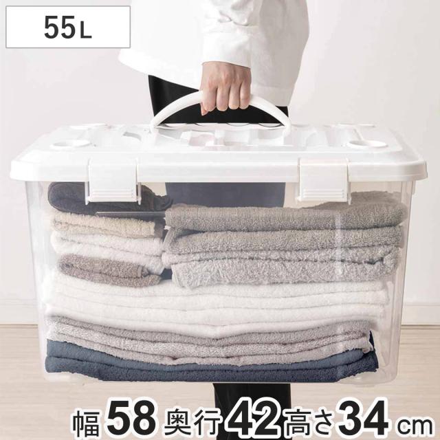 収納ボックス 幅58×奥行42×高さ34cm フタ付き 持ち手付き プラスチック ( 収納ケース 収納 衣類 小物 キャスター付き 片開き ロック式 積み重ね 持ち運び フタ 持ち手 付き 防災グッズ 食品 日用品 ストック おもちゃ )
