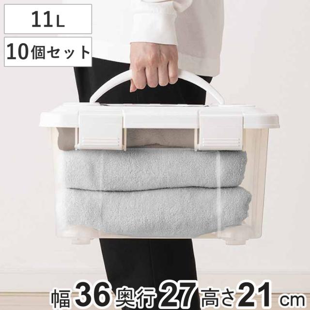 収納ボックス 幅36×奥行27×高さ21cm フタ付き 持ち手付き プラスチック 10個セット ( 収納ケース 収納 衣類 小物 キャスター付き 片開き ロック式 積み重ね 持ち運び フタ 持ち手 付き 防災グッズ 食品 日用品 ストック おもちゃ )