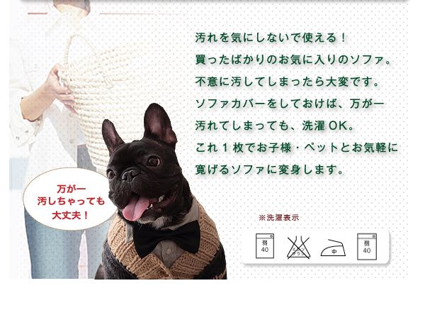 ペットがいるお宅でも気兼ねなくソファが使えます。