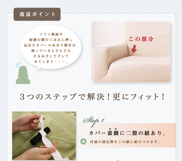 ※本品をソファーにとりつける際、本品裏面のサイド紐を使用する場合は、