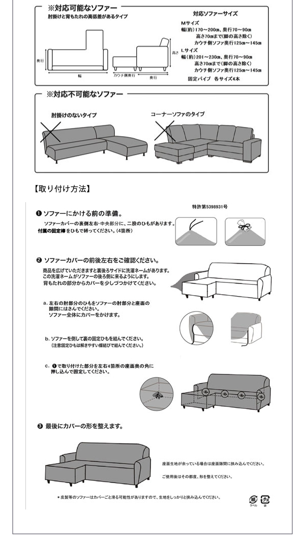 ※本品はソファにかぶせるものであり、多目的に使用しないでください。