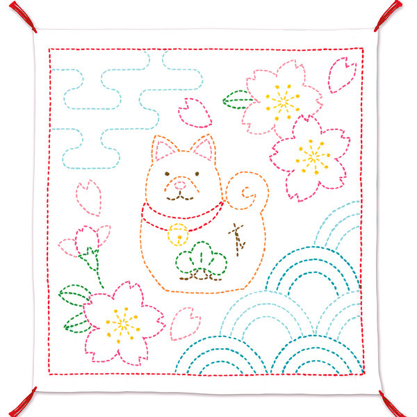 刺しゅうキット 『刺し子キット 戌とさくら SK343 花ふきん さしこキット 干支 戌 和手芸 和調手芸 お正月 和柄』 Olympus オリムパス